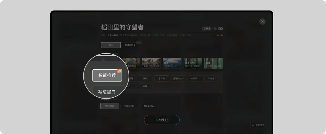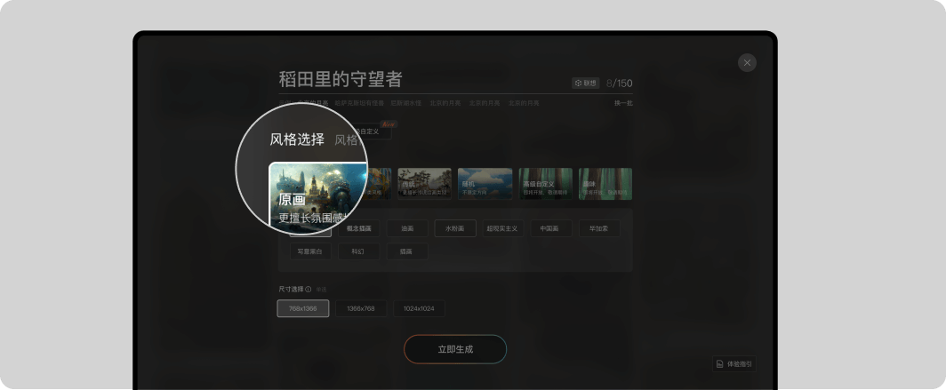 2、用户还可以自由的设定想要的风格和画作的尺寸,得到更加满意的结果。