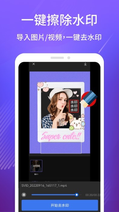 2、主打的就是水印的去除这方面的功能,无论是照片格式的文件还是视频格式的文件都能够去除。