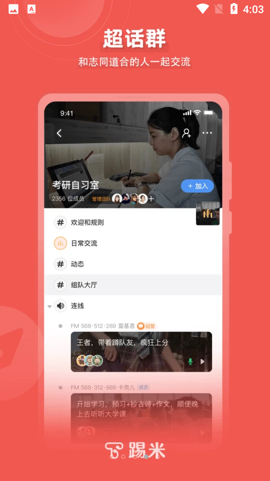 踢米是一款十分愉快的手机社交服务中心,里面的社交模式是非常的有趣的,用户可以亲自下载去体验看看哦,满足用户所有的社交需求,用户还可以在线学习到许多聊天的话术,也可以与自己兴趣相符的好友进行线上的视频、话题的互动等模式的体验,感受不一样的舒适的社交,喜欢在网上结交好友的用户一定要来试试哦。
