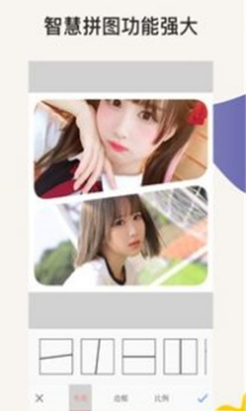 2.海量丰富的美颜模板和拼图模板可以自由使用,大家还可以根据自己的需求来添加智能水印;
