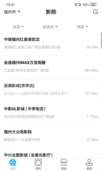 1、帮助大家找寻自己家周边的电影院,能够查看影院的拍片情况。