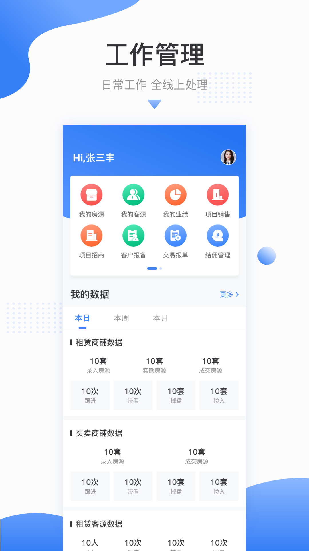 5.提供海量甄选铺源、客户信息录入查询管理、供需精准匹配以及个人专属微店、经纪人自营销等多种服务,致力于为经纪人打造高效便捷的移动工作平台。