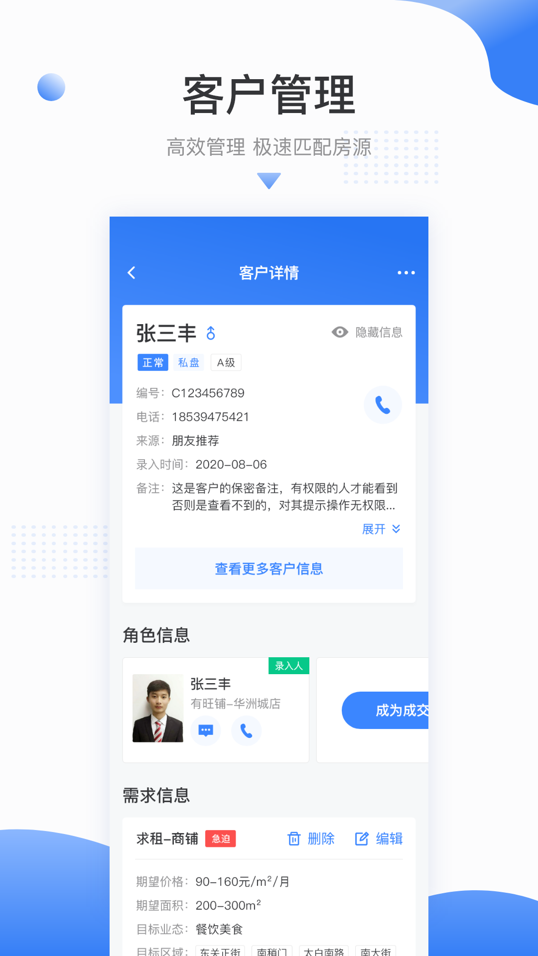 2.可以快速进行客户的管理,所有的客户信息都可以直接在线查看,非常的方便。