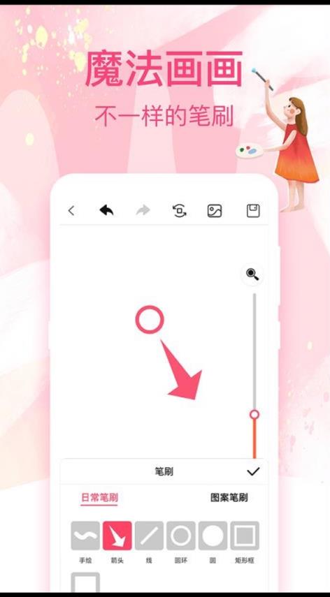 1、是实用性非常强大的图片创作工具,找到你喜欢的各种画笔直接选择就可以使用了。