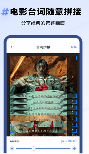 6.多段精彩台词自由拼接,让你记录分享经典的电影台词和画面。