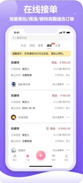 2.商家、经纪人可以在平台发布活动通告与演艺需求信息