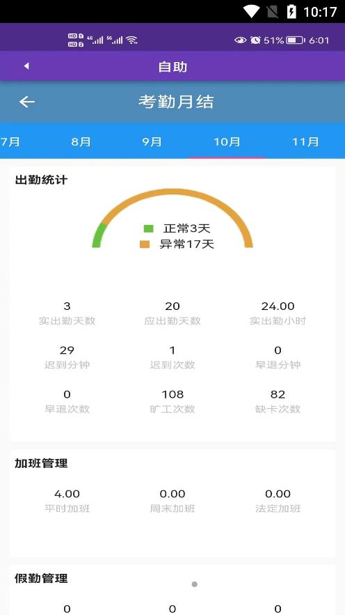 1、时刻都能去打开软件查看员工的考勤,每天到岗的时间信息都能准确的为你生成图标。