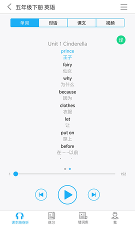 3、支持中英文互译、阅读练习、背诵练习、单词听写等内容。