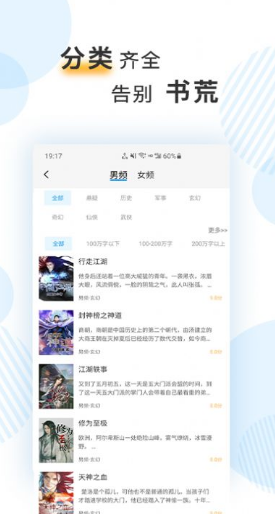 6.为您呈现出每一个分类相对应的小说,立即就可以阅读。