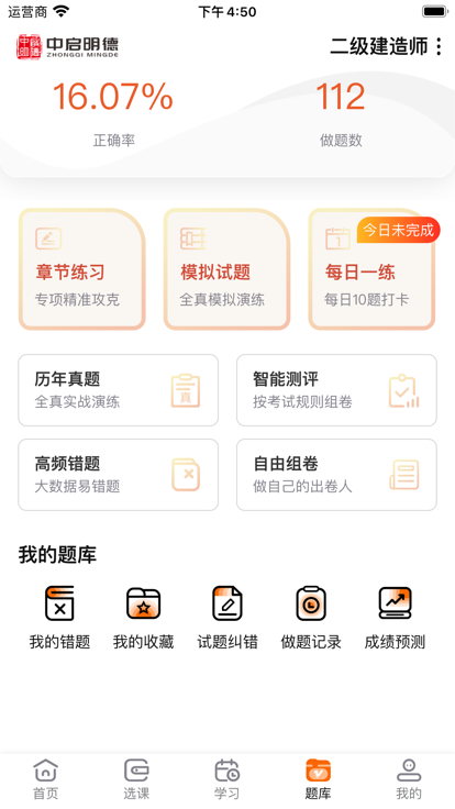 中启明德是一款让你可以安心的进行自己需要的职业技能的证书的学习和培训,对于每一个技能的线上学习的资料完善的提供,还有专业的老师的授课的视频讲解,帮助你更好的专注学习,还有进行题库的学习和刷题,这样的话,不仅可以让用户去提高学历,还可以获取多方面的资格证书哦,感兴趣的不如自己来下载试试吧。