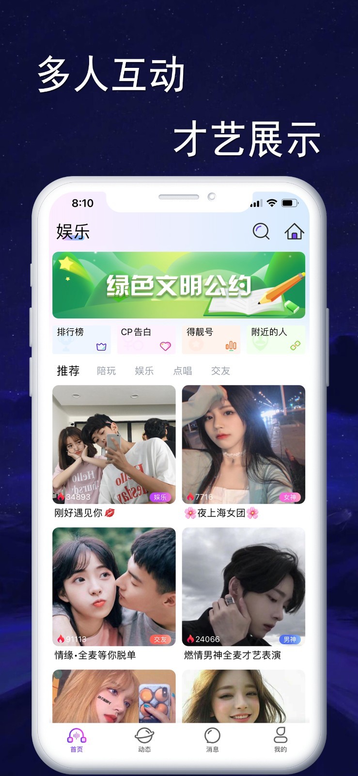 1、多人在线互动还是挺好玩的哦,年轻人的语音互动必备神器。