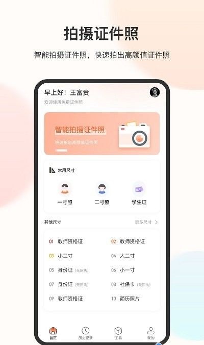 3、当你需要拍摄证件照片的时候可以使用软件进行便捷的一键拍摄。