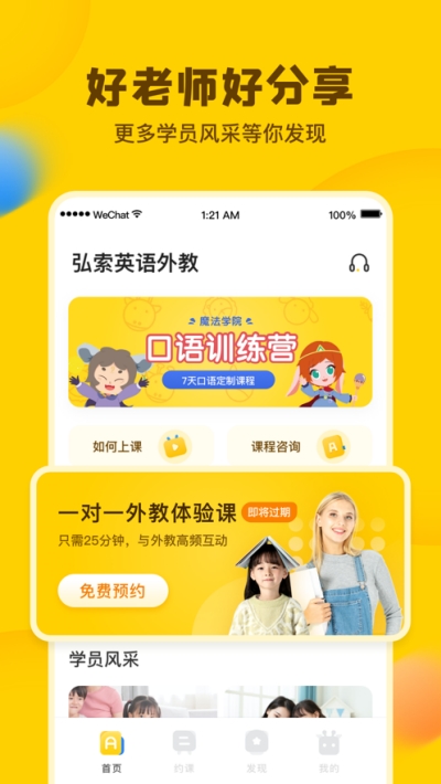 学习顾问定制专属学习计划、严选外教1对1在线教学、贴心客服全程跟进学习效果,多方位为原因保驾护航。