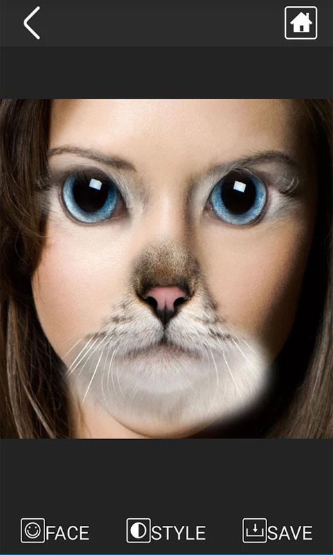 2、您能够通过它将您的脸一边换成动物的脸,或者给您的双眼加上动物的眼睛,让您的照片变得超级炫酷,搞笑。