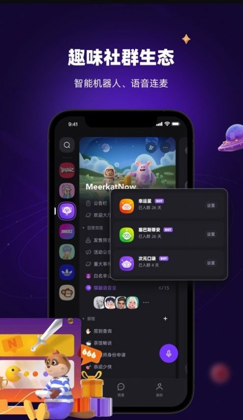 猫鼬社群社交是一款很不错的手机社交软件,你可以通过这款软件结识很多的好友,软件为用户营造了很不错的社交环境,你可以在这里进行友好的互动,这里的功能有很多,每一款功能都是可以给用户带来惊喜的,你可以随时使用这款软件帮助自己进行各种的互动使用,还有语音交友的功能可以使用。