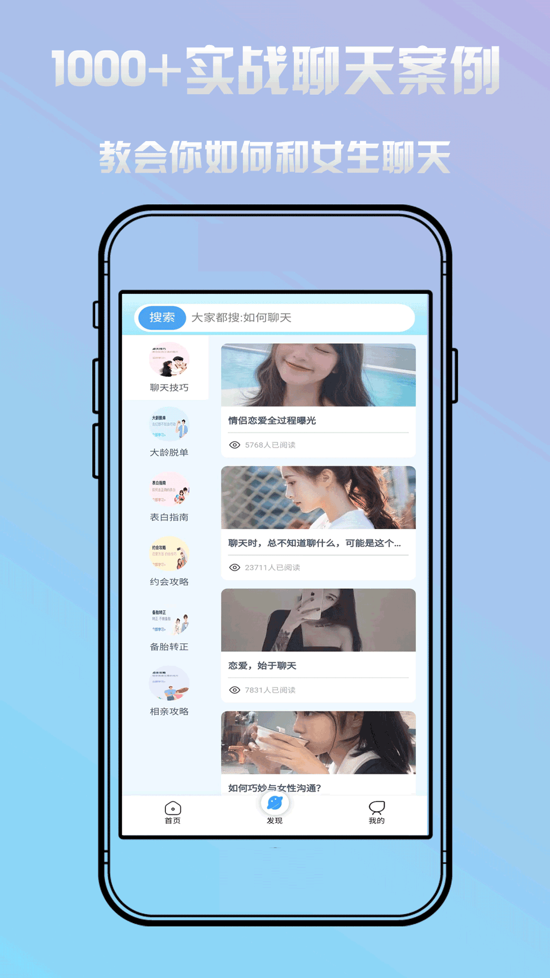 1、2000+恋爱帮帮忙:阅读恋爱聊天技巧文章,帮您快速掌握聊天技巧;