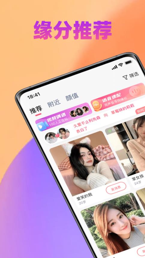 3、缘分推荐:还有视频偶遇、语音速配等多种内容为你去提供的,你可以用声音去寻找缘分的。