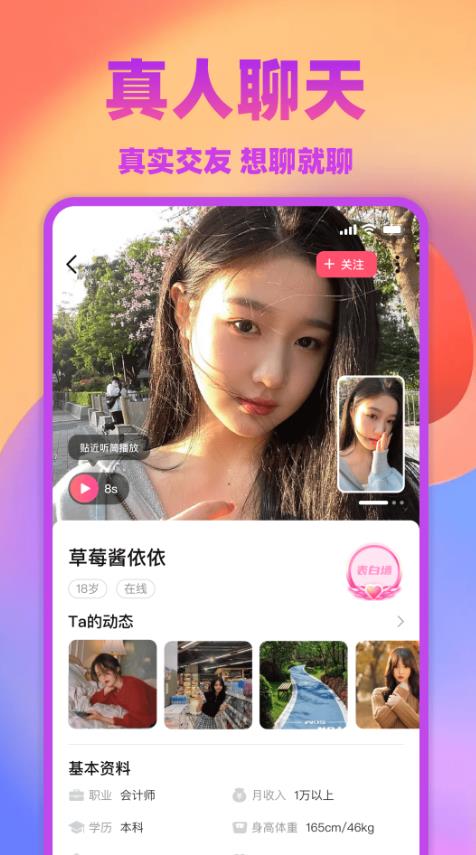 1、上传真实的照片,可以获得更多的关注和聊天机会;
