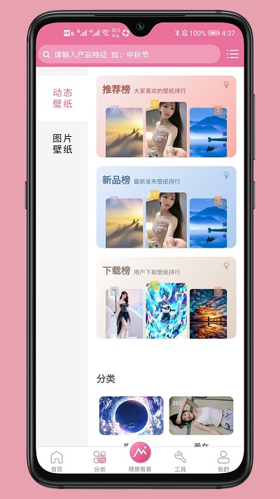2.通过智能推荐系统推荐你最喜欢的几大壁纸分类。