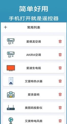 3、在使用时只需要选择你的家电品牌就能一键遥控。