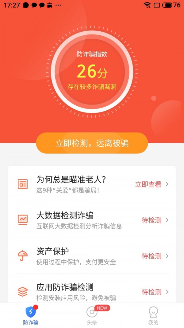 1.系统检测,检测系统诈骗信息,清除诈骗风险。