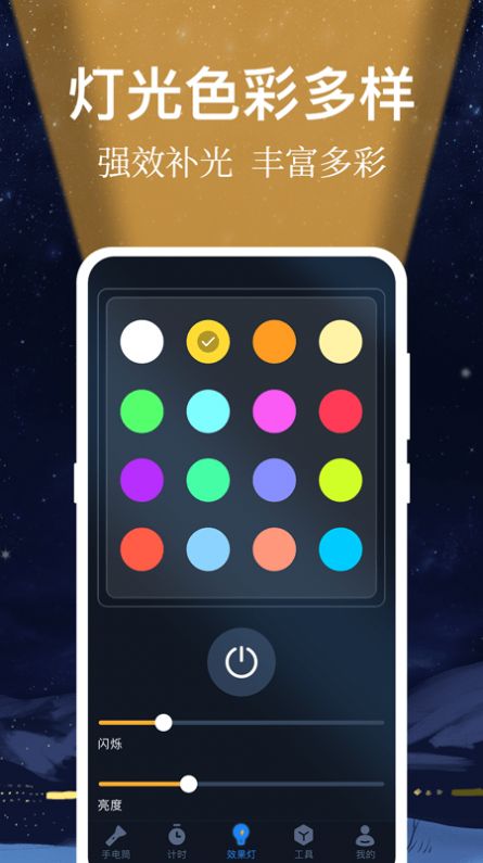 1.提供的手电筒工具非常的齐全,能够帮助用户去照亮了黑夜的路。