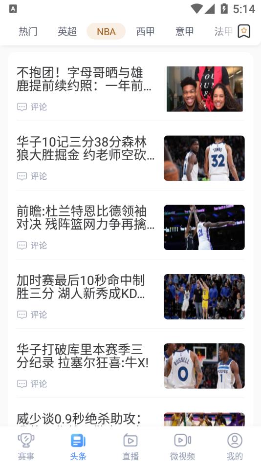 涵盖欧冠、NBA、CBA、中超、英超、意甲、德甲、西甲等赛事,视频直播、动画直播、比分直播。