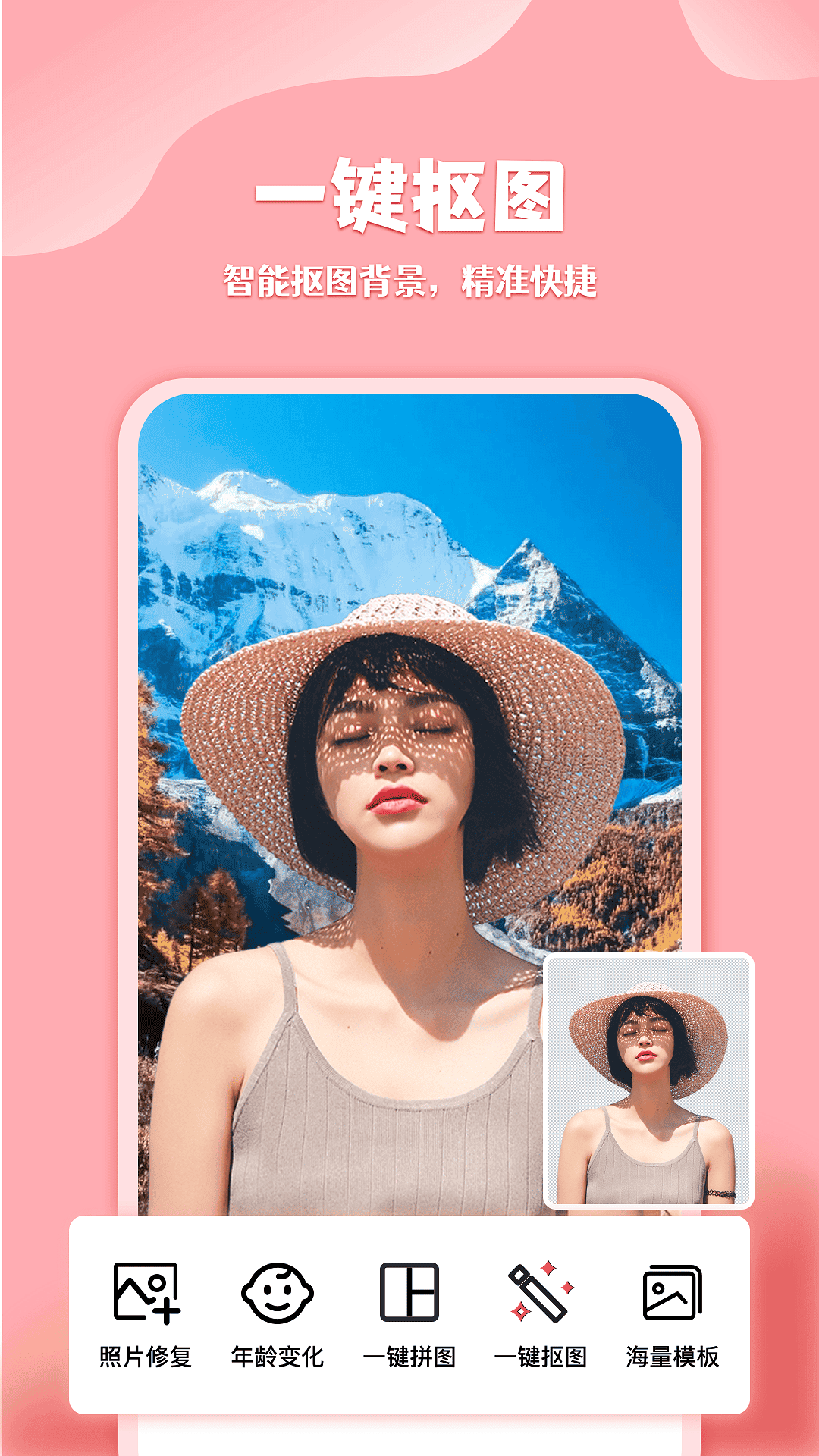 2.多个不同编辑工具应有尽有,可以一键抠图换背景,同时还有老照片修复功能也很全面;