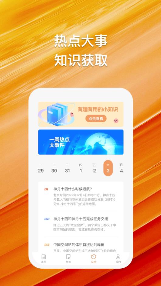 【发现】热点大事,知识获取。