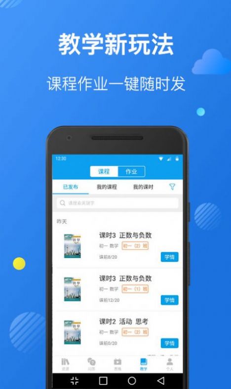 学习模块:包含所有课程、作业及相关信息,老师可在此发布课程及作业,查看自己的所有课程及作业。