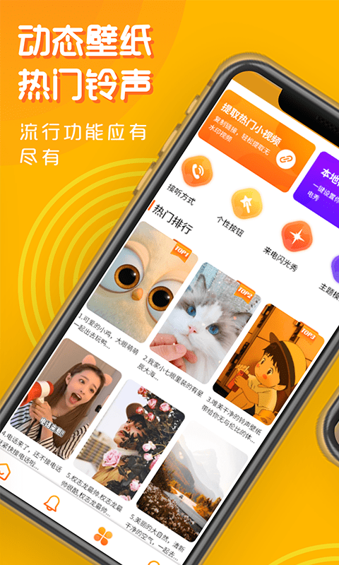 1、时下热歌铃声任你更换,抖音热歌、铃声热门飙升榜设置自己专属的个性来电铃声。