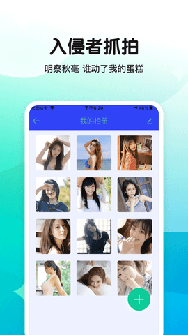 3.输错三次密码以后,自动抓拍入侵者,帮您快速掌握谁动了您的应用。
