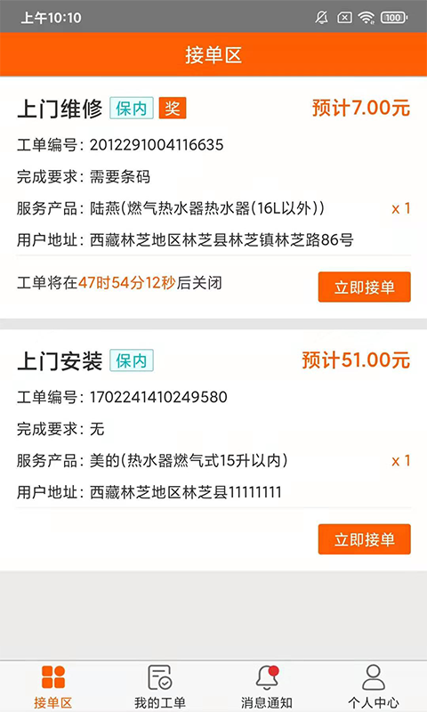 点击应用上的接单工具迅速开始接单工作就可以了。
