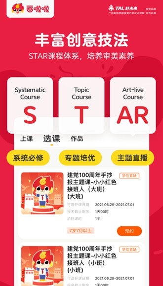 画啦啦VIP课堂是由广州六一信息科技有限公为中国5—12岁儿童专门设计的互联网美术教育app,是国内首个在线少儿美术教育产品。它教研团队借鉴国内外前沿少美教育理念,于32个一线城市实地调研,结合数百个家庭真实体验的测试结果,制定贴合孩子天性的课程大纲和教学方式 ,采用现代少儿美术教学方法,培养孩子的想象能力和创造能力,鼓励孩子自由创作。