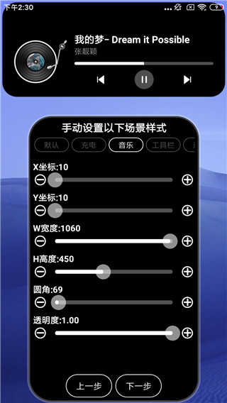 2、手动设置以下场景样式,设置好之后点击下一步。