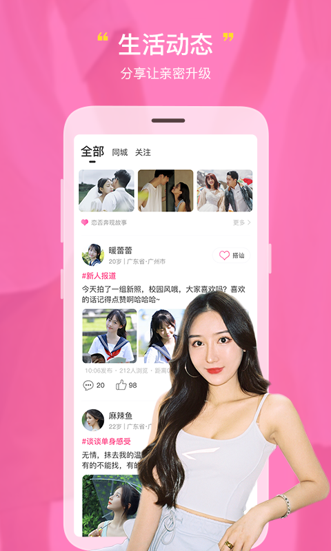 动态分享:用户可以在恋否上分享自己的生活动态,让更多的人了解自己;