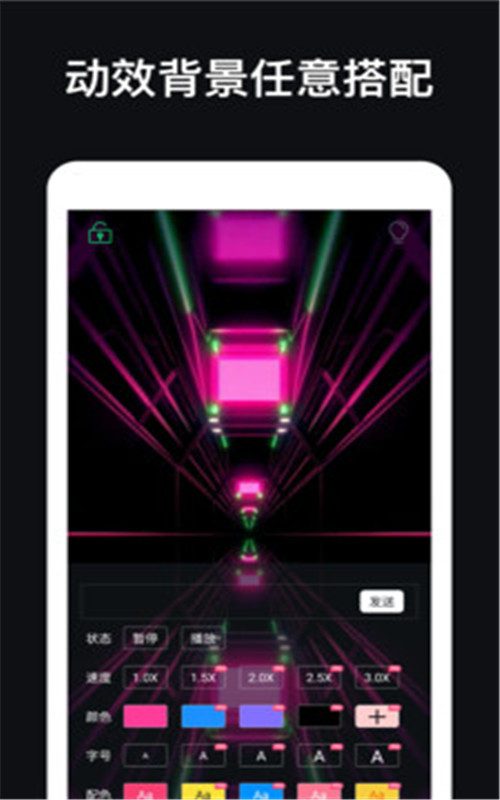 1、你可以使用应援灯将你的手机当做LED显示屏,你可以编辑任意文字、调整文字样式、颜色、播放速度等。