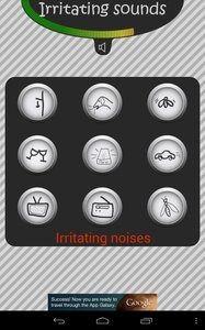 该应用程序包括的婴儿啼哭声,咳嗽,钻牙,闹钟,链锯,冰箱,气喇叭,锤子,高音调的声音,放屁,打喷嚏,呕吐,苍蝇,蜜蜂,电视噪音,狗叫声有喜欢的朋友吗?