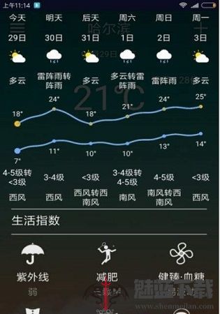 一款非常小巧便捷的天气应用。它可以获取当地天气温度、天气状态、湿度、风力、穿衣提示、染情况、紫外线等相关数据。