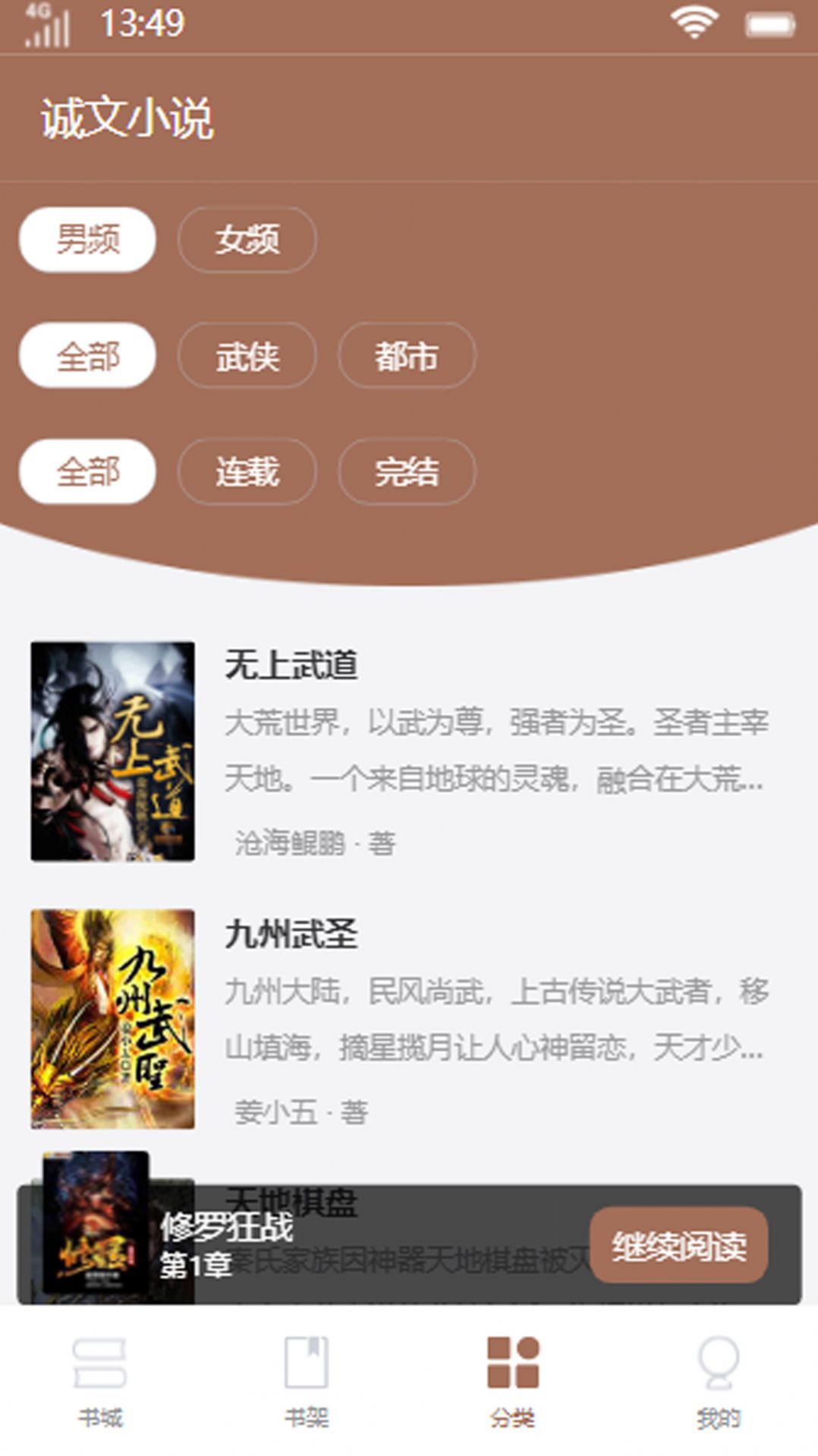 诚文小说是一款可以为你提供许多优质小说的软件,为喜欢阅读小说的用户提供了一个很好的阅读平台,这里提供了一个简洁舒适的阅读界面,让你可以很舒服的阅读喜欢的各种小说资源,软件内的主题还可以根据自己的相关喜好来设置,需要的用户赶紧来下载试试吧。