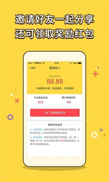 分享笑话给好友,即得人民币分成奖励