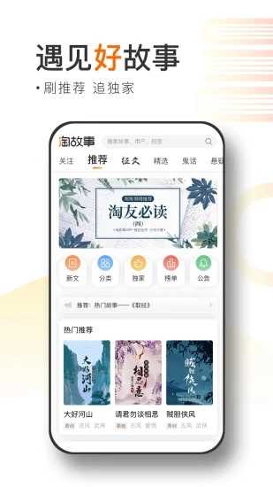 淘故事是一款有趣的应用程序,专门为喜欢阅读故事和发现有趣事物的人们而设计。你可以在这里找到各种各样的故事,包括有趣的小说、真实的故事和神秘的传说。此外,还拥有海量精彩视频,内容齐全,你想看的这里都有,赶紧来下载看看吧。