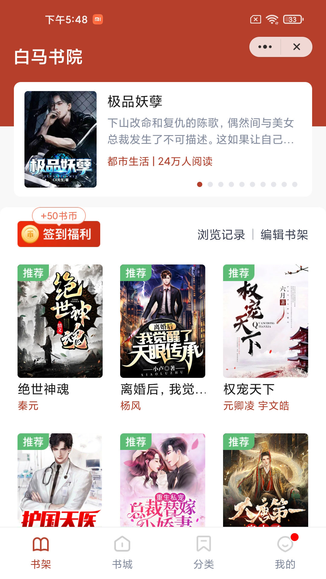 3、每日签到领取奖励,积攒小说币,兑换海量好书。