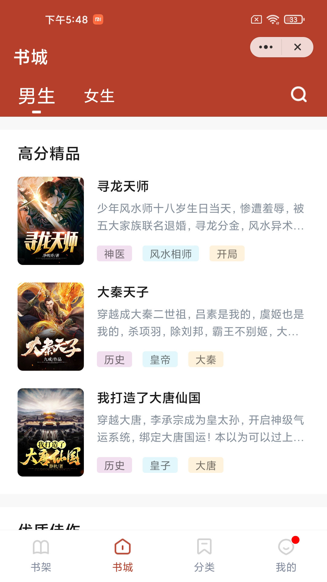 2、多维度的小说推荐,满足各种读者的阅读需求;