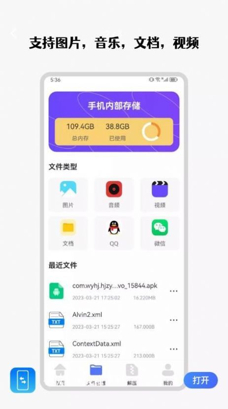 3、以最快的速度传输文件,支持WIFI、蓝牙、扫码三种方式互传,快速高效,将文件传输速度最大化。