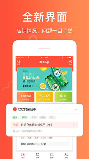 邮助手是一款为邮政的地面推广人员打造的一款办公类软件,软件中用户能更为方便的管理自己的店铺的销售情况,订单管理等。用户还可使用这款软件及时的与上级进行沟通,解决遇到的各种工作上的问题,提高整体的办公效率与沟通效率。