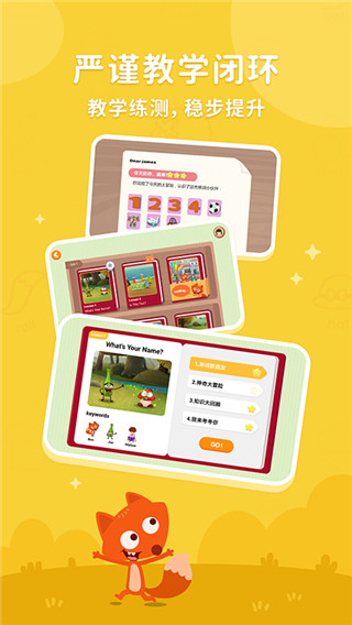 小狐狸英语app是一个专为少儿英语学习打造的在线学习软件,有趣的在线互动模式,大量原创音视频及绘本资源,卡通动画英语课程在线教学,全程在线指导,让孩子喜欢上学习英语。将游戏和枯燥的英语结合在一起,不仅可以提高孩子学习的乐趣,还能加强学习的记忆力。从小学习外语,赢在起跑线。