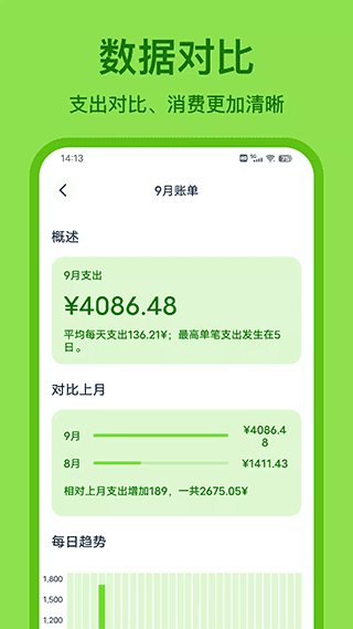 3、数据对比,支出对比,消费更清晰;