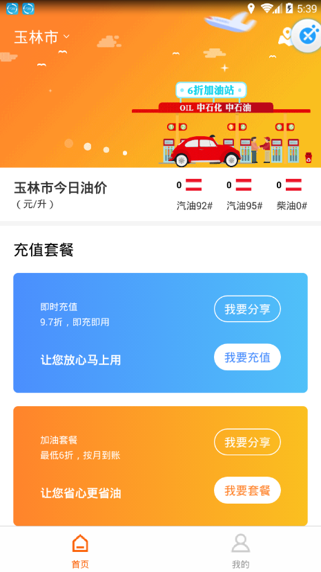 充值优惠:即时充值9.7折;加油套餐充值享受6.0折,银行监管,百分百兑付;