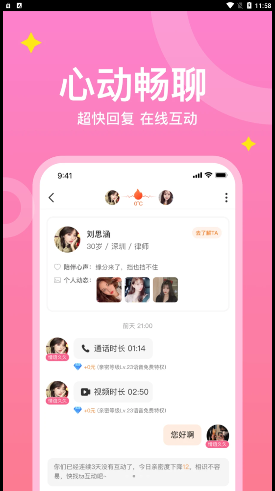 2、高速稳定的即时通讯,让你与对方无时差沟通;